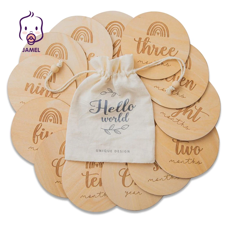 Name: Mordedor de madera para bebé, 14 Uds., tarjeta de cumpleaños para recién nacido, meses de nacimiento, accesorios de fotografía para niños, juguete DIY